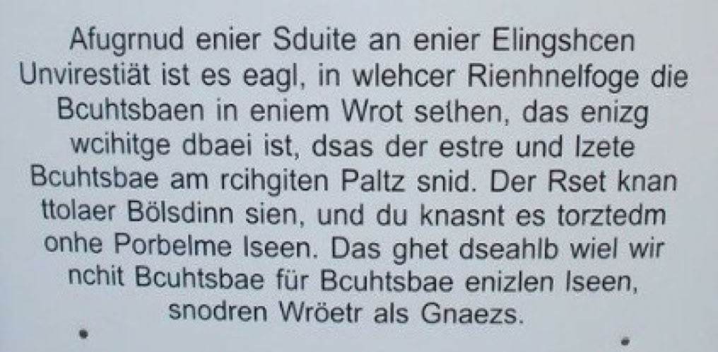 Hier korrigiert ihr Gehirn nämlich ganz automatisch so, daß Sie den Text ganz einfach verstehen ...